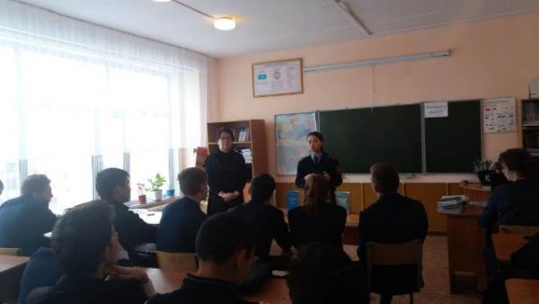 11 б және 11 В сынып оқушылары арасында " "Подросток и закон"" тақырыбына Оңтүстік-Шығыс ПБ аймақтық инспекторы А. С. Алшимбаеваның қатысуымен дәріс-әңгіме өткізілді.