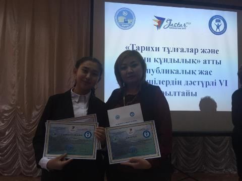"Жастар жылына" орай "Тарихи тұлғалар және рухани құндылық" атты Республикалық жас зерттеушілердің дәстүрлі VI құрылтайына қатысқаны үшін 9А сынып оқушысы Тусупбаева Саяжан ІІ дә…