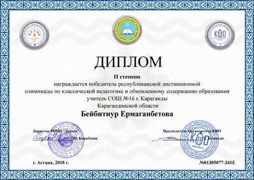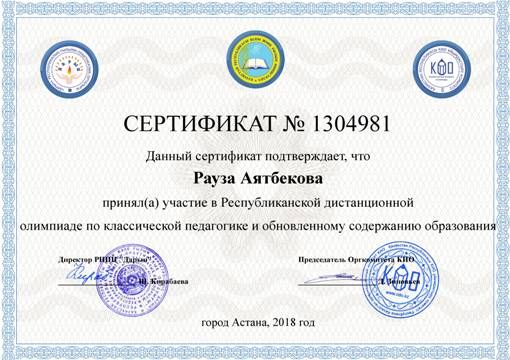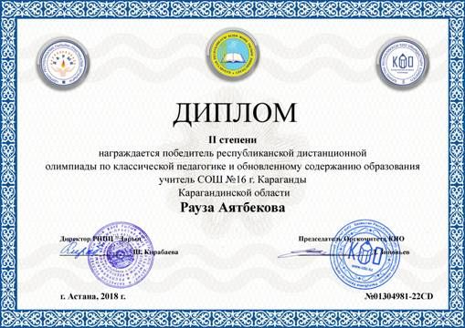 Қазақ тілі және әдебиет пәні мұғалімдері  Б.А Ермаганбетова ,  Р.К  Аятбекова классикалық педагогика және жаңартылған білім беру бағдарламасы бойынша республикалық қашықтықтағы олимпи…