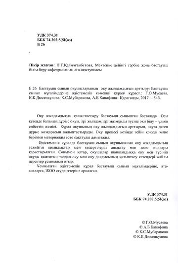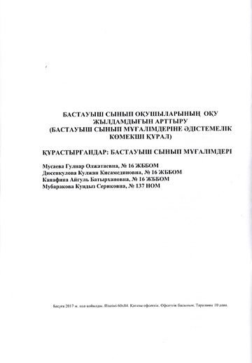 Бастауыш сынып мұғалімдері Г.О.Мусаева, К.К.Дюсенкулова, А.Б.Канафинаның "Бастауыш сынып оқушыларының оқу жылдамдығын арттыру" бастауыш сынып мұғалімдеріне арналған әдістемелік құрал…