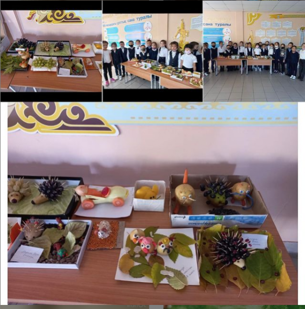2ә сынып оқушыларының көкөністен жасаған бұйымдар көрмесі.