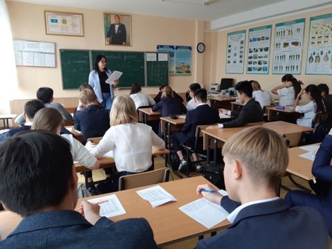 19.09.2019 ж 8Б сыныбында тілдер күнінен орай қазақ тілі мен әдебиеті пәнінен "Мен қазақ тілін білемін" ашық сайыс сабақ өтті. Өткізген: қазақ тілі мен әдебиеті пәні мұғалімдері Аятбекова…