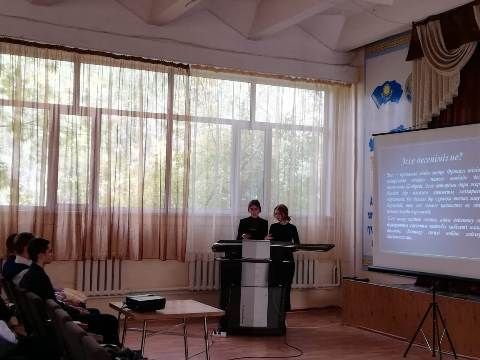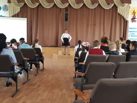 18.09.2019 мектептің 11Б сынып оқушылары 10Б сыныбымен бірігіп,  "Тіл туралы ой-толғау" атты шараға атсалысты. Шараны өткізген: қазақ тілі мен әдебиеті пәні мұғалімі Нурфазылова С.Г.