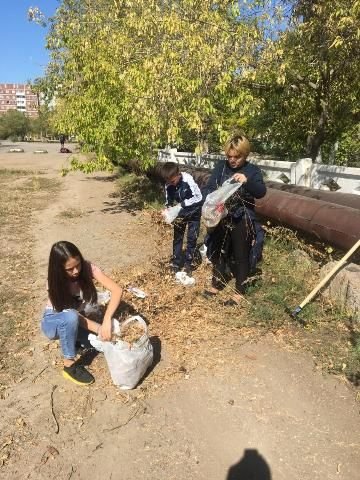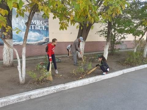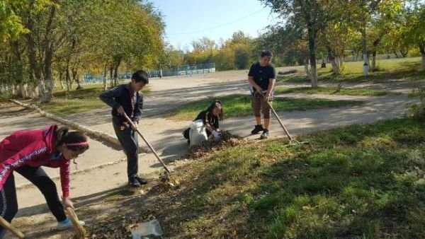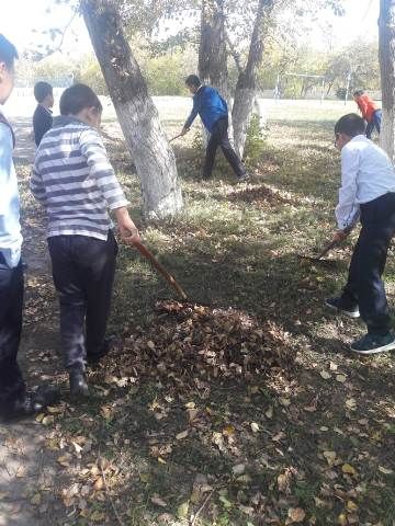 19.09.2019 ж мектеп оқушылары сынып жетекшілерімен мектеп ауласын тазалады.