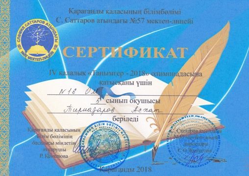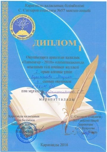 Оқушыларға арналған қалалық "Танымгер-2018" олимпиадасында ағылшын тілі, математика, жаратылыстану пәндері бойынша жүлделі орындарға ие болған оқушыларды құттықтаймыз!!!