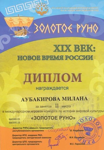 Поздравляем победителей игрового конкурса по истории мировой культуры "Золотое руно".