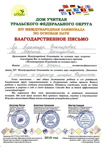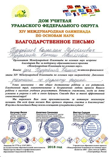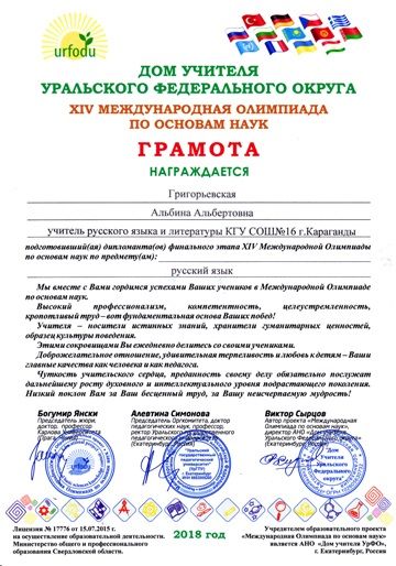 Грамоты учителям 7-11 классов за подготовку финалистов XIV международной олимпиаде по основам наук.