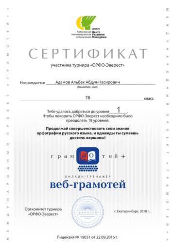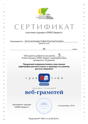 Прошел турнир по русскому языку "Орфо-Эверест". Учитель Григорьевская А.А.