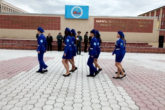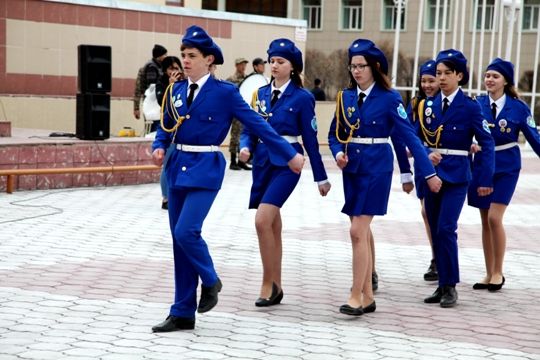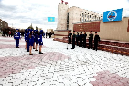 08.05.2018 г отряд КГУ СОШ №16 участвовал в смотр строя и песни в КарГУ им.Е.А.Букетова со студентами факультета НВП, показательное выступление по строевой подготовке.