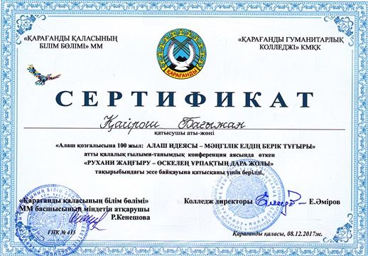 "Алаш қозғалысына 100 жыл: Алаш идеясы-мәңгілік елдің берік тұғыры" атты қалалық ғылыми-танымдық конференция аясында өткен "Рухани жаңғыру-өскелең ұрпақтың дара жолы" тақыр…