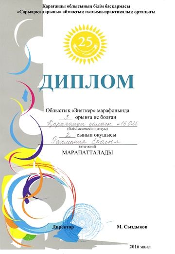 Облыстық "Зияткер" марафонына қатысып жүлделі ІІІ орынға ие болған 2 сынып оқушыларын құттықтаймыз!