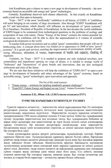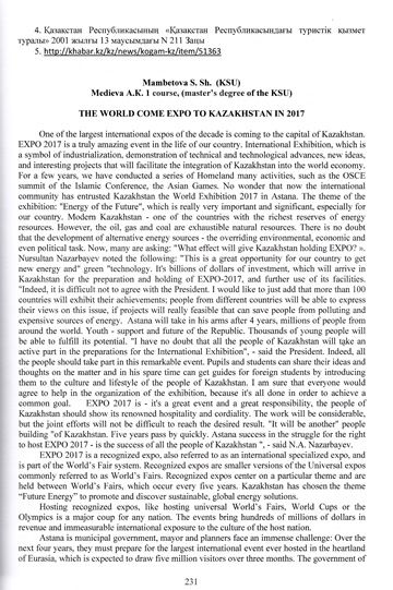 Опубликовано статья учителя английского языка Медиевой А.К. по теме: "The world come expo to Kazakhstan in 2017" в сборнике материалов международной научно-практическо…