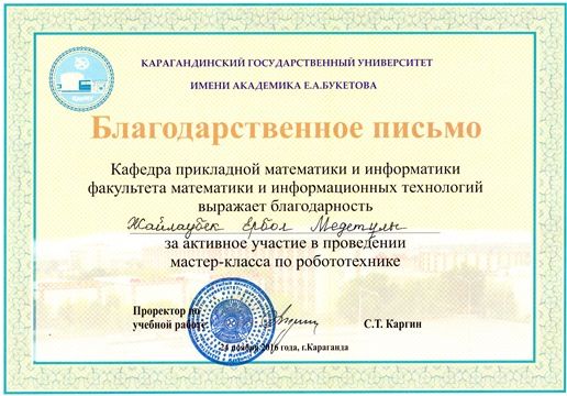 Кафедра прикладной математики и информатики факультета математики и информационных технологий КарГУ им.Е.А.Букетова выражает благодарность Е.У.Аязбекову за активное участие в проведении мастер…