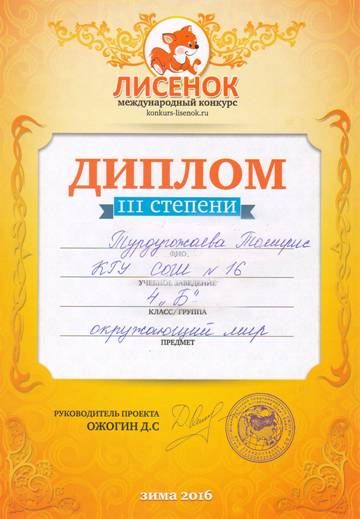 МЕЖДУНАРОДНЫЙ КОНКУРС ДЛЯ МЛАДШИХ КЛАССОВ "ЛИСЕНОК"