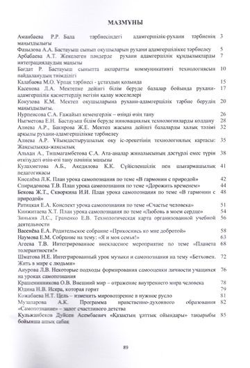 Опубликована статья учителя начального класса Бекова Ж.Т и Скворкина И.И план урока самопознания по теме: "В гармонии с природой" на сборник материалов областного нау…