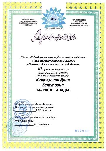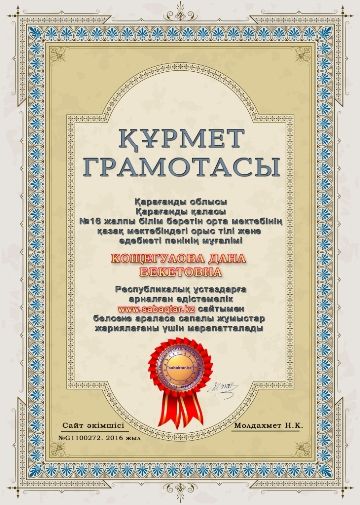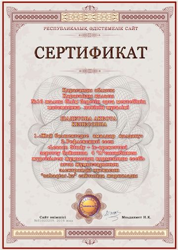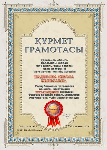 За публикацию материала и активную работу на сайте www.sabaqtar.kz почетной грамотой, сертификатом награждаются учитель математики Шадетова А.К., учитель русского языка и литературы Кощегулова Д.Б.,…