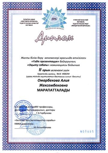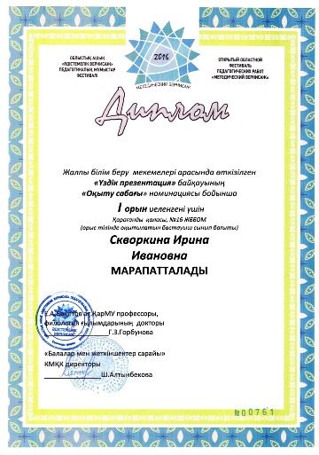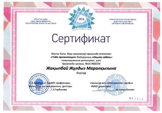 За особый труд в сфере образования знаком "Ұлағатты ұстаз" и почетной грамотой образовательного интернет портала "Өрлеу" РК награждена Жандаулетова Айгуль Тиштыкбаевна.