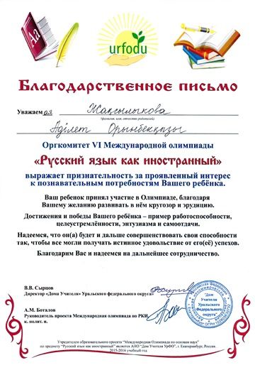 Поздравляем победителей и призеров Международной олимпиады по основам наук "Русский язык как иностранный". Благодарственными письмами и грамотами отмечены администрация школы, родите…