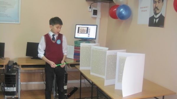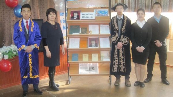 В школе была организована книжная выставка, посвященная 170 летию со дня рождения Жамбыла Жабаева. Организатор выставки: библиотекарь Б.О.Бакирова.