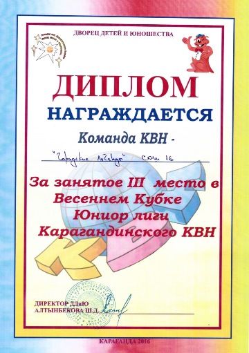Команда КВН "Городские легенды" заняла ІІІ место в Весеннем Кубке Юниор лиги Карагандинского КВН.
