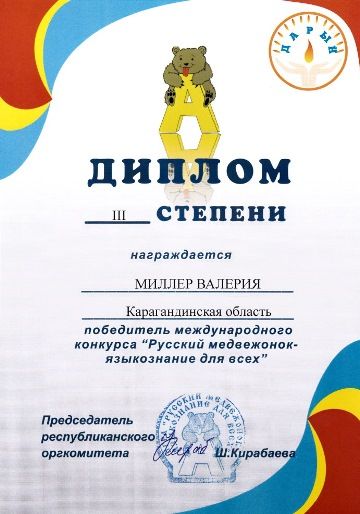 ДИПЛОМЫ III СТЕПЕНИ конкурса «Русский медвежонок-языкознание для всех».