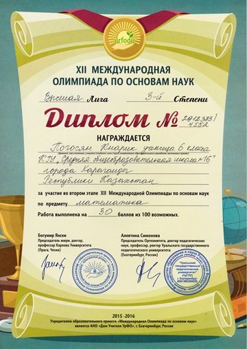 Поздравляем победителей и призеров ХІІ международной олимпиады по основам наук по предметам математика, английский язык и История Казахстана. Участники были награждены Дипломом ІІ, ІІІ степени и за…
