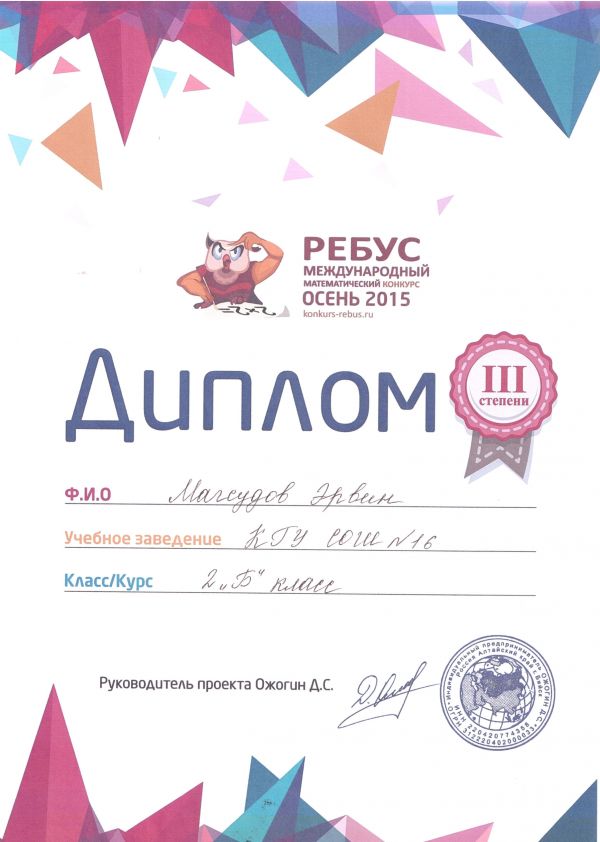 Поздравляем победителей и призеров Международного математического конкурса "Ребус"