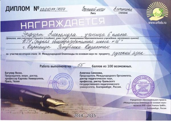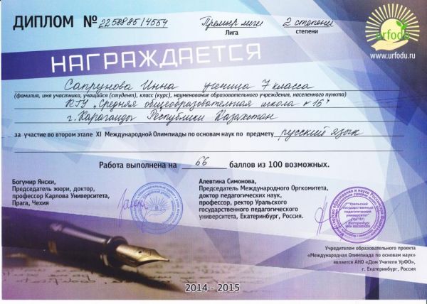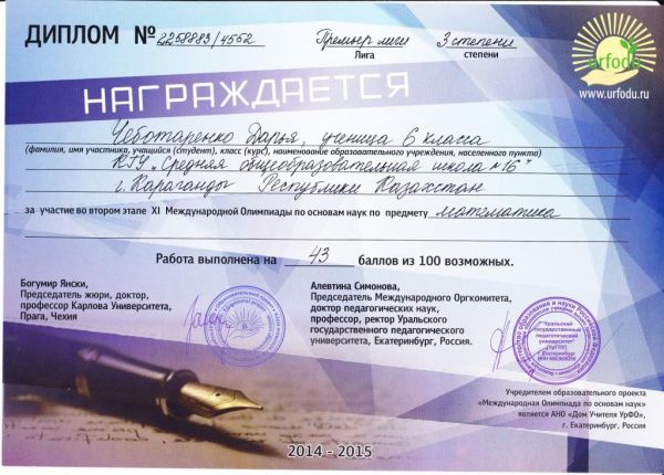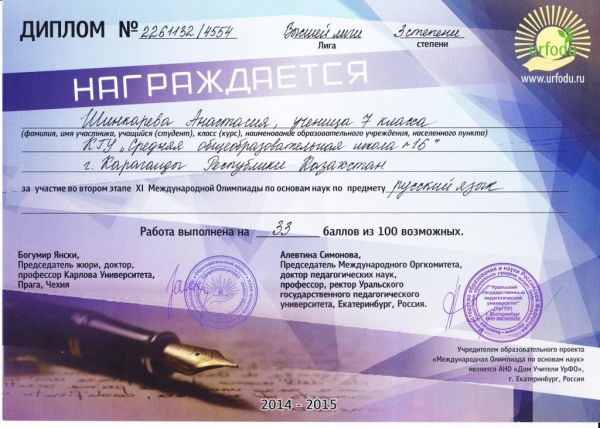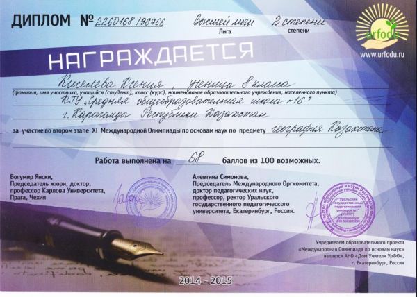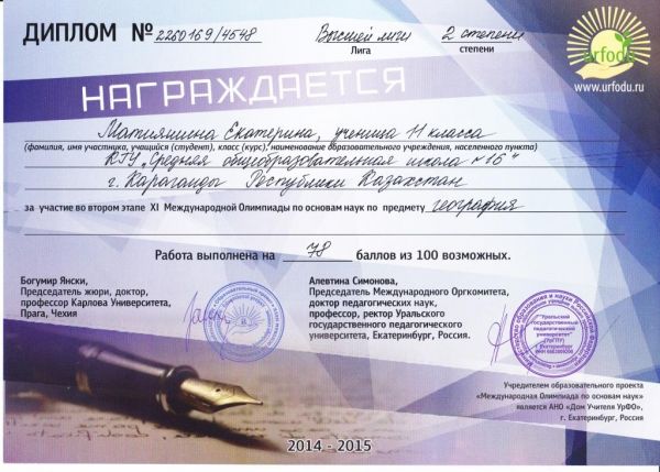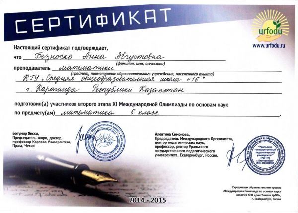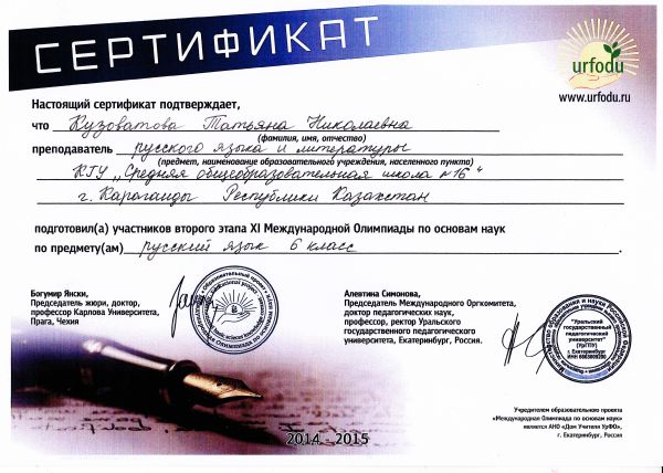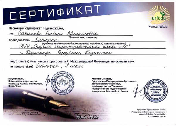 Сертификаты за подготовку участников второго этапа ХІ международной олимпиады по основам наук получили учителя нашей школы: