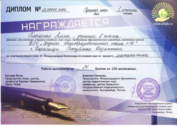 Ученица 11 класса Ойрат Мадина заняла І место в V международном конкурсе исследовательских работ школьников по математике и механике имени О.Жолдасбекова. Поздравляем!