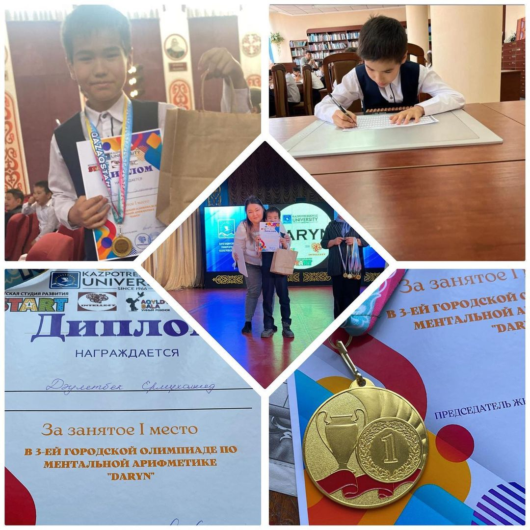 Ученик 4 " А " класса Даулетбекмұухаммед занял 1 место по ментальной арифметике по математике за 10 минут, правильно выполнив 144 задачи из 150. Поздравляем