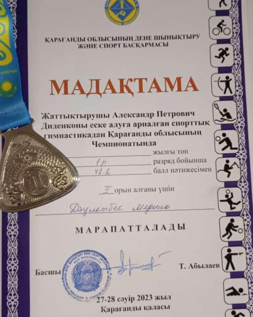 Ученица 4" А " класса Даулетбек Медина заняла 2 место по гимнастике. Поздравляем