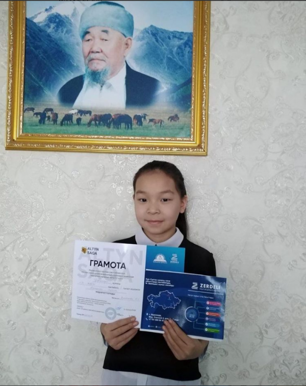 Математика пәнінен республикалық "Алтын сақа" олимпиадасының аудандық кезеңінде ерекше жетістік көрсеткені үшін Ахашова Сабина грамотамен марапатталды