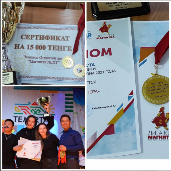 Школьная команда КВН "Три мушкетёра" под руководством капитана команды Жанакулова Сакена приняла участие в Открытой лиги "Магнитка NEXT" сезона 2021 года. Команда стала ЧЕМПИОНОМ…