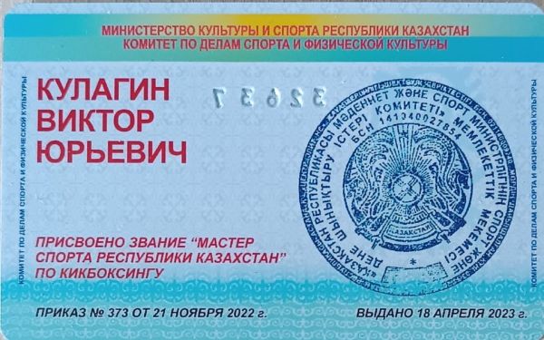 Ученик 11"В" класса Кулагин Виктор выполнил норматив МС РК по кикбоксингу. Классный руководитель Гордюшина Э.А. Поздравляем