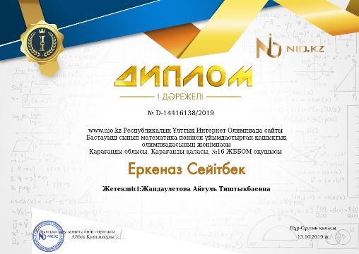 Бастауыш сынып қазақ тілі пәнінен ұйымдастырылған Республикалық Ұлттық Интернет олимпиадасына 2А сынып оқушылары қатысып, жүлделі орындарға ие болды. Сынып жетекшісі А.Жандаулетова Алғыс хатқа ие бо…