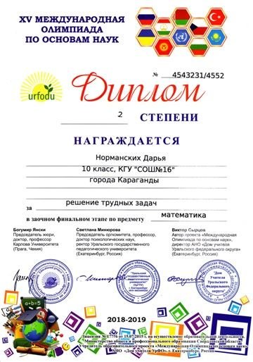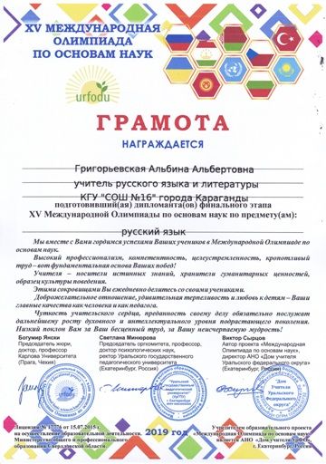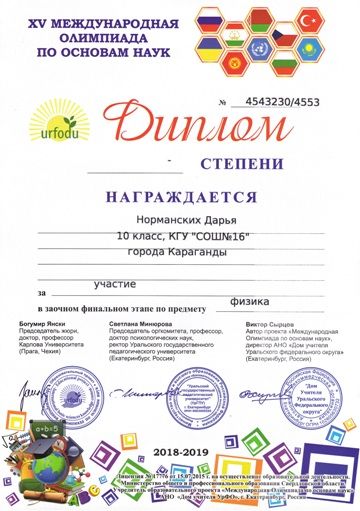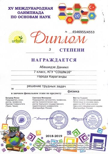 Ғылым негіздері бойынша XV Халықаралық олимпиада.Ақтық кезең.