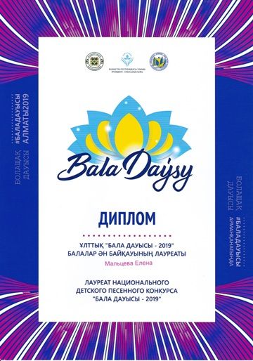 6А сынып оқушысы Касентаева Л, 7В сынып оқушысы Мальцева Е Ұлттық "Бала дауысы-2019" балалар ән байқауына қатысып, дипломдармен марапатталды.