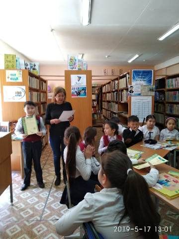 20.05.2019 ж 3-4 сынып оқушыларымен оқу шаттығы жобасы аясында "Мәнерлеп оқу" сайысы өтті. Сайыстың соңында "Ең үздік оқырман" номинациясы бойынша үздік оқушылар мара…