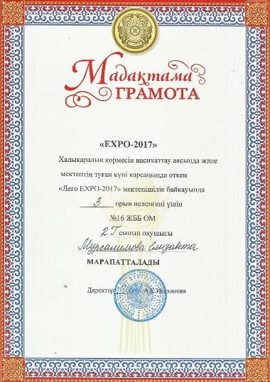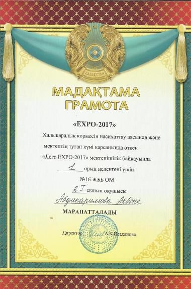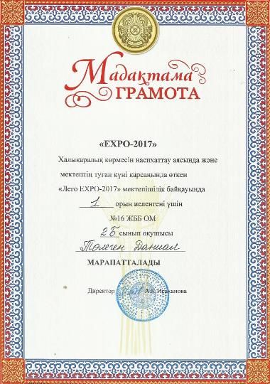 Поздравляем победителей и призеров школьного конкурса "Лего EXPO-2017", прошедшего в рамках пропаганды Международной выставки "EXPO-2017" и в канун дня рождения школы!