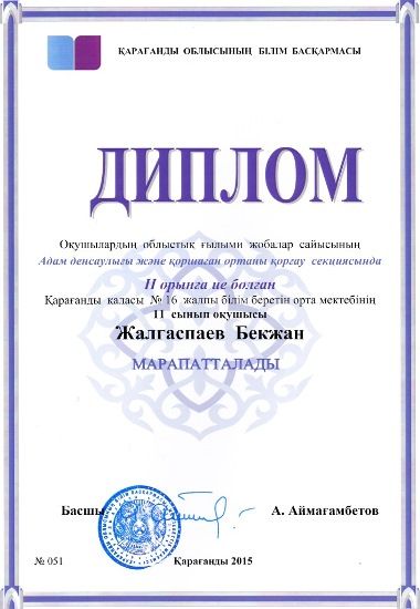 Жалғаспаев Бекжан 11 класс ІІ место …