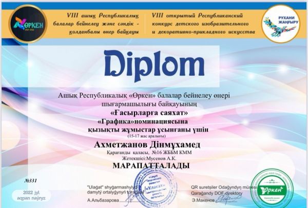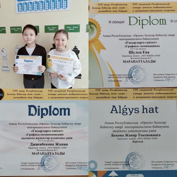 Учащиеся 4Б класса Шульц Ева и Джиенбекова Жания заняли призовые места в Республиканском конкурсе детского изобразительного и декоративно- прикладного искусства " Өркен". Классный руковод…