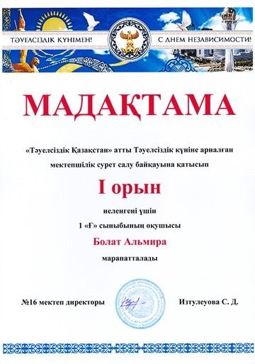 16 желтоқсан Тәуелсіздік күнімен құттықтаймыз!