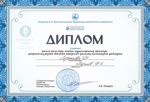 Жалпы білім беру мектеп оқушыларының арасында сән дизайны бойынша өткізілген қалалық олимпиадаға қатысушы 7 сынып оқушысы Луценкова Д, 8 сынып оқушысы Ботабекова Д "Ерекше шығ…