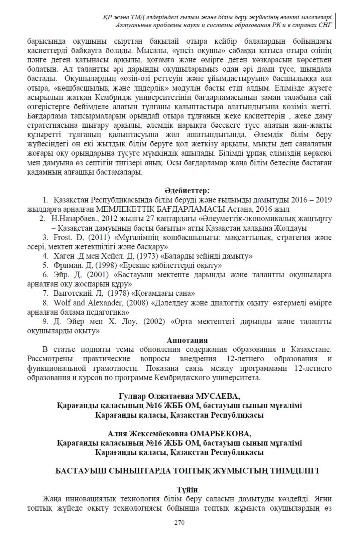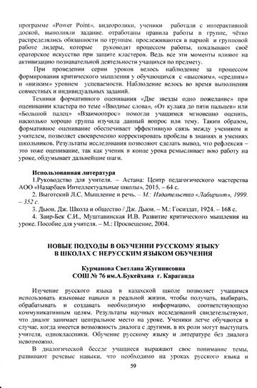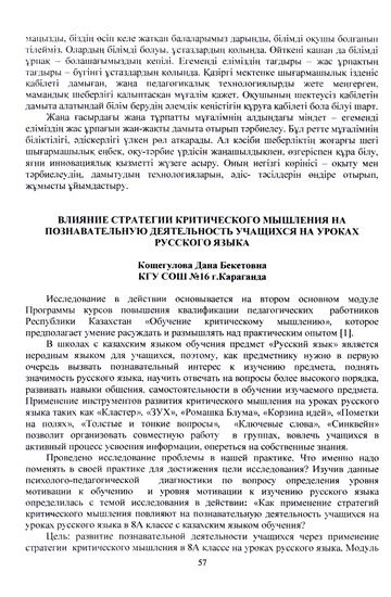 Опубликована статья учителя русского языка и литературы Кощегуловой Д.Б по теме "Влияние стратегии критического мышления на познавательную деятельность учащихся на уроках русского яз…