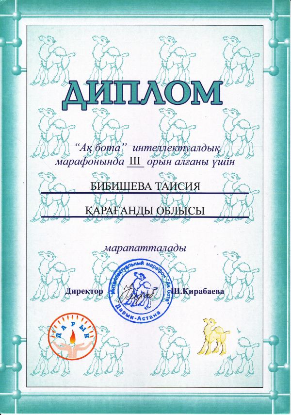 "Ақбота" интеллектуалдық марафонының ІІ және ІІІ орын жүлдегерлерін құттықтаймыз!