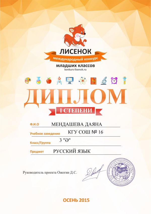 БАСТАУЫШ СЫНЫПТАРҒА АРНАЛҒАН "ЛИСЕНОК" ХАЛЫҚАРАЛЫҚ КОНКУРСЫНЫҢ ЖЕҢІМПАЗДАРЫ МЕН ЖҮЛДЕГЕРЛЕРІН ҚҰТТЫҚТАЙМЫЗ