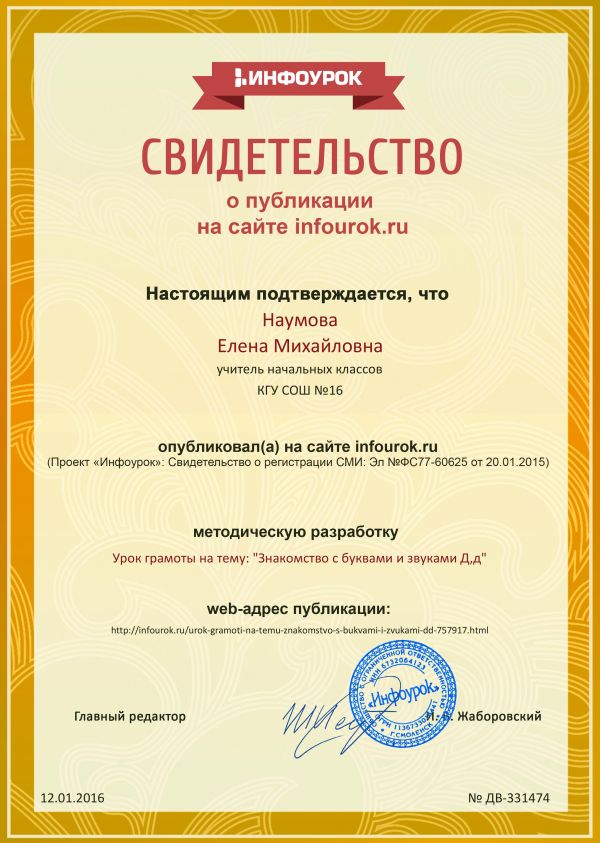"Infourok" сайтында бастауыш сынып мұғалімі Е.М.Наумованың әдістемелік әзірлемелері жарияланды.