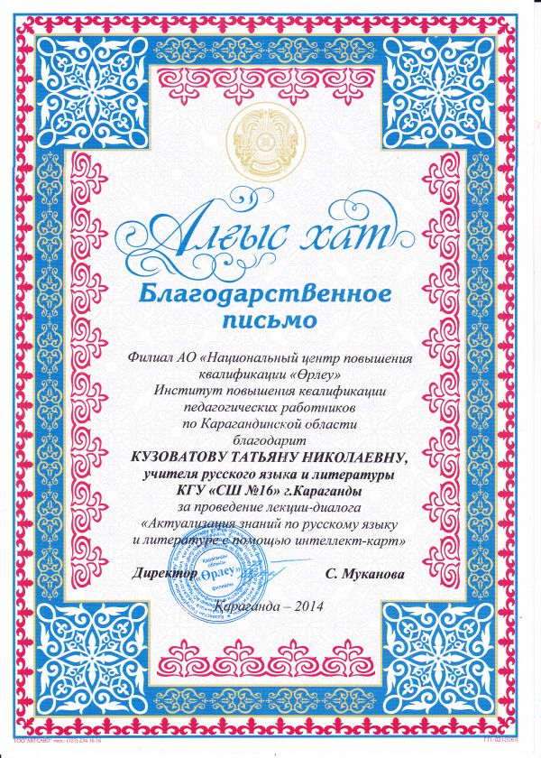 Орыс тілі, әдебиеті және өзін-өзі тану пәні мұғалімдері Т.Н.Кузаватова мен И.Н.Куркинаның "Орта мектепте орыс тілі, әдебиеті және өзін-өзі тануды оқытудағы жаңа әдістер" атты мақалас…