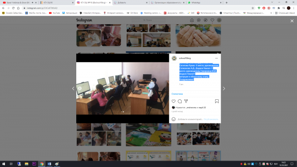 "Шабыт" білім беру әдістемелік орталығы ұйымдастырған "Күзгі" әуен атты Республикалық онлайн байқауында "Аппликация" номинациясымен қатысып I дәрежелі дипломмен мектепа…