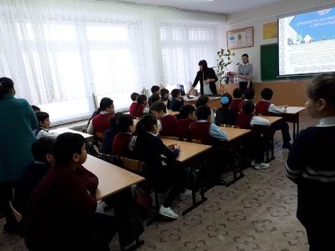 Абай атындағы қалалық кітапханасының кітапханашылары мектебіміздің 4А, 4Ә сынып оқушыларына "Латын әліпбиіне көшу" тақырыбында  іс-шара өткізді.
